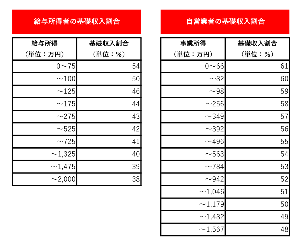 | 基礎収入=総収入×基礎収入割合 |