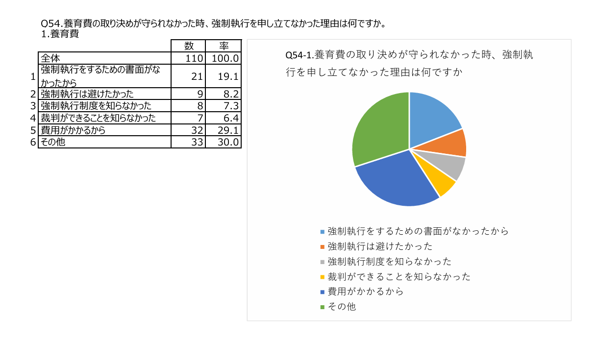 実際に、前掲調査結果の概要では、養育費支払いの約束が守られなかったときに、強制執行を申立てなかった方の約2割が、その理由として「強制執行をするための書面がなかったから」と回答しています。