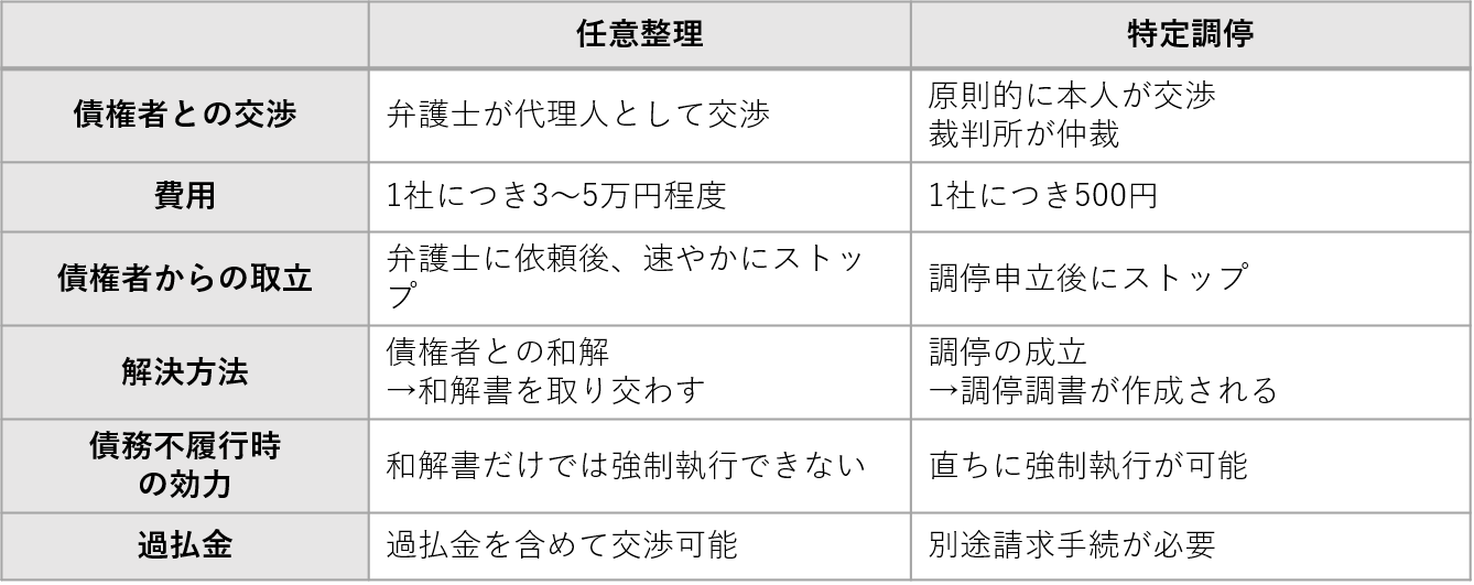 任意整理と特定調停の共通点と違い|どちらを選ぶといいのか?