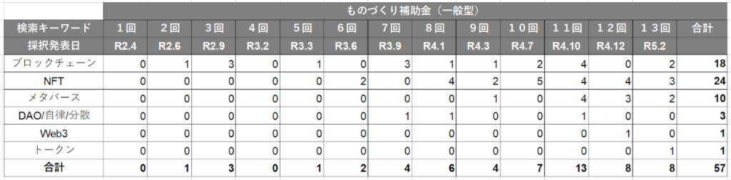 ここでは、Web3に関する実際の採択件数と採択事例を見ていきたいと思います。